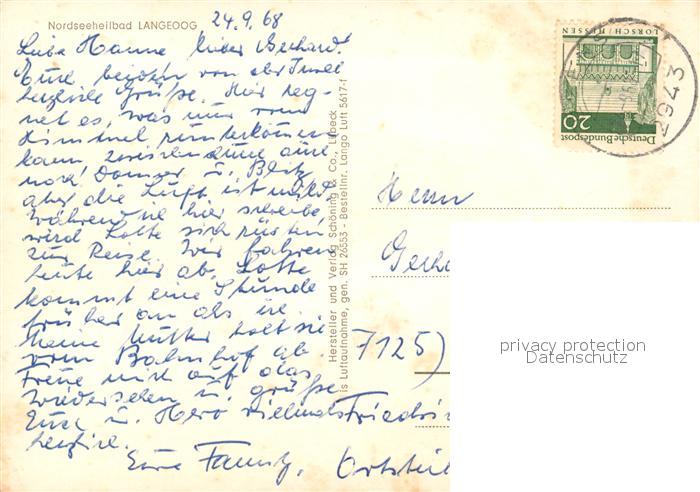 73158954 alte Postkarte Langeoog Nordseebad Fliegeraufnahme Badestrand postalisch gelaufen Erhaltung siehe scans [KathaD81] KatCode: 11110003462007