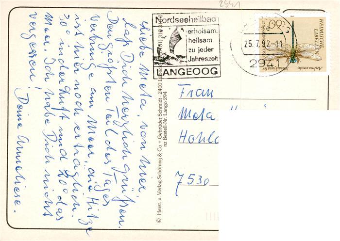 73937126 alte Postkarte Langeoog Nordseebad Fliegeraufnahme Duenenweg Wasserturm Ortsansicht Anleger und Yachthafen postalisch gelaufen Erhaltung siehe scans [WerneD78] KatCode: 11110003462007