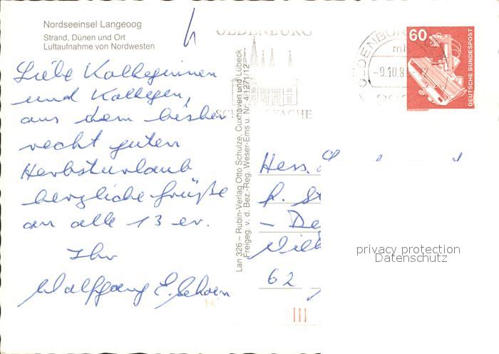 72016746 alte Postkarte Langeoog Nordseebad Fliegeraufnahme mit Strand postalisch gelaufen Erhaltung siehe scans KatCode: 11110003462007