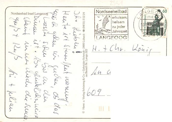 73937147 alte Postkarte Langeoog Nordseebad Fliegeraufnahme Ortspartie Stimmungsbild Duenen postalisch gelaufen Erhaltung siehe scans [WerneD78] KatCode: 11110003462007