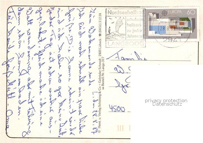 73121770 alte Postkarte Langeoog Nordseebad Fliegeraufnahme Wasserturm Duenen Bahnhof postalisch gelaufen Erhaltung siehe scans [KathaD81] KatCode: 11110003462007