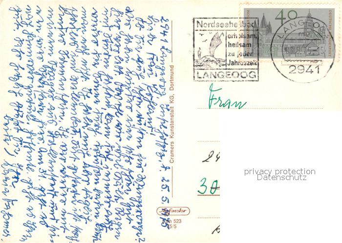 73159998 alte Postkarte Langeoog Nordseebad Fliegeraufnahme Wasserturm Inselbahn Anleger Strand postalisch gelaufen Erhaltung siehe scans [KathaD81] KatCode: 11110003462007