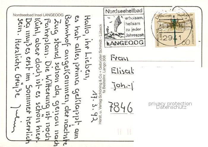 73335162 alte Postkarte Langeoog Nordseebad Fliegeraufnahme Wasserturm Park Duenen postalisch gelaufen Erhaltung siehe scans [WerneD78] KatCode: 11110003462007