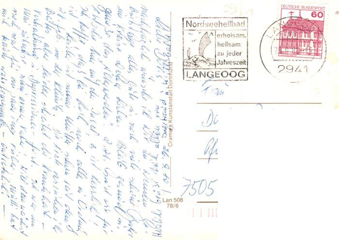 73937158 alte Postkarte Langeoog Nordseebad Fliegeraufnahmen Anleger Inselbahn Badestrand Duenen Hauptstrasse Abendstimmung postalisch gelaufen Erhaltung siehe scans [WerneD78] KatCode: 11110003462007