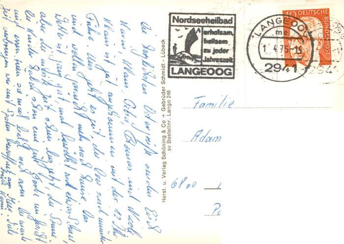 73937129 alte Postkarte Langeoog Nordseebad Fliegeraufnahmen MS Langeoog Inselbahn Duenen Badestrand postalisch gelaufen Erhaltung siehe scans [WerneD78] KatCode: 11110003462007
