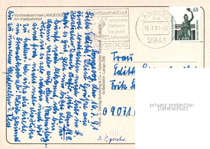 72946477 alte Postkarte Langeoog Nordseebad Inselbahnhof postalisch gelaufen Erhaltung siehe scans [LiesaD40] KatCode: 11110003462007