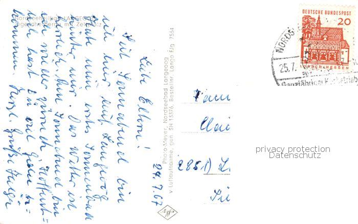 73850420 alte Postkarte Langeoog Nordseebad Jugendherberge mit Zeltplatz postalisch gelaufen Fliegeraufnahme Erhaltung siehe scans [FriedD77] KatCode: 11110003462007