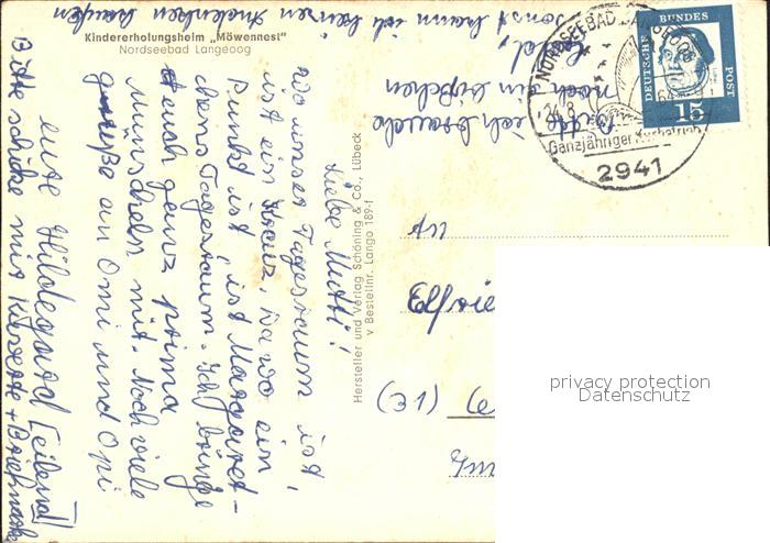 72315357 alte Postkarte Langeoog Nordseebad Kindererholungsheim Moewennest postalisch gelaufen Erhaltung siehe scans KatCode: 11110003462007