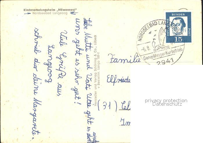 72315359 alte Postkarte Langeoog Nordseebad Kindererholungsheim Moewennest postalisch gelaufen Erhaltung siehe scans KatCode: 11110003462007