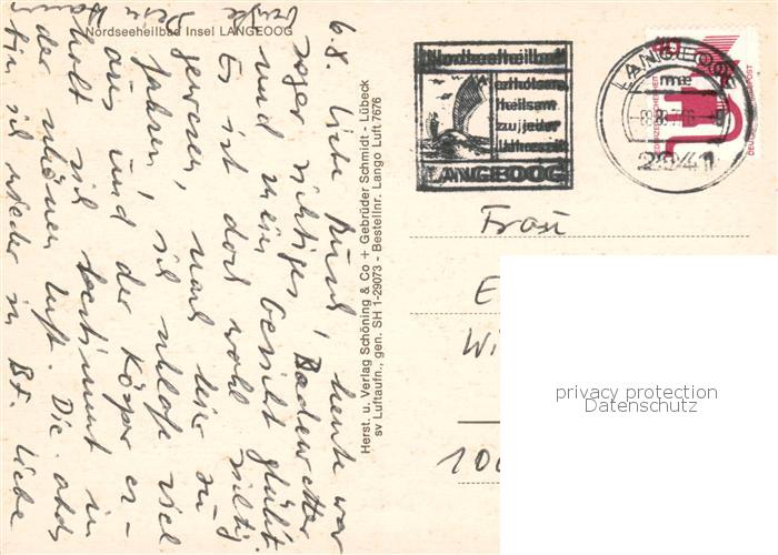73854417 alte Postkarte Langeoog Nordseebad Nordseeheilbad Nordseeinsel postalisch gelaufen Fliegeraufnahme Erhaltung siehe scans [FriedD77] KatCode: 11110003462007