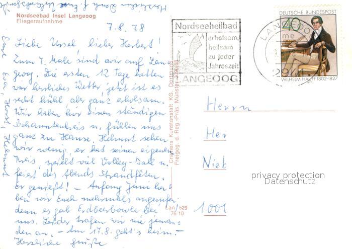 72970334 alte Postkarte Langeoog Nordseebad Nordseeinsel Fliegeraufnahme postalisch gelaufen Erhaltung siehe scans [FriedD77] KatCode: 11110003462007