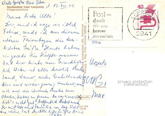 72743984 alte Postkarte Langeoog Nordseebad Nordseeinsel Fliegeraufnahme postalisch gelaufen Erhaltung siehe scans [FriedD77] KatCode: 11110003462007