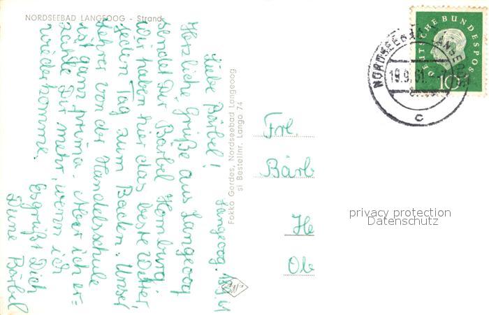 73158870 alte Postkarte Langeoog Nordseebad Strand postalisch gelaufen Erhaltung siehe scans [KathaD81] KatCode: 11110003462007