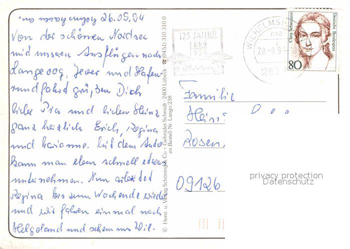 72652032 alte Postkarte Langeoog Nordseebad Strandhalle Duenen Kuranlage Wellenschwimmbad Abendstimmung am Meer Faehre Inselbahn Flugplatz Wasserturm postalisch gelaufen Erhaltung siehe scans [FriedD77] KatCode: 11110003462007