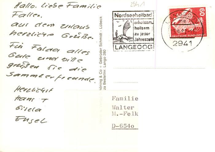 73937542 alte Postkarte Langeoog Nordseebad Wasserturm Duenenweg Inselbild Fliegeraufnahme Panorama Sanddornbeeren Inselbahn Badestrand Ortsbild Abendstimmung Sonnenhof Lale Andersen