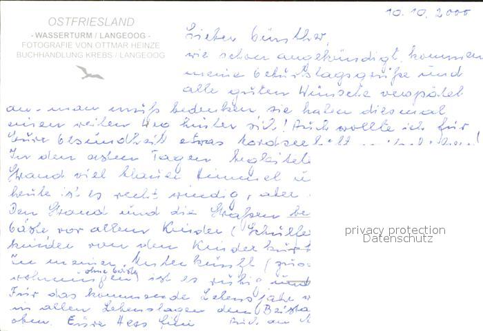 72599514 Langeoog Nordseebad Wasserturm Foto von Ottmar Heinze postalisch nicht gelaufen Erhaltung siehe scans [LiesaD40] KatCode: 11110003462007