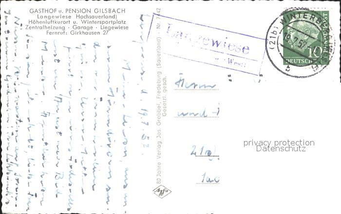 72096654 alte Postkarte Langewiese mit Kahlen Asten Gasthaus Pension Gilsbach postalisch gelaufen KatCode: 11110005958048