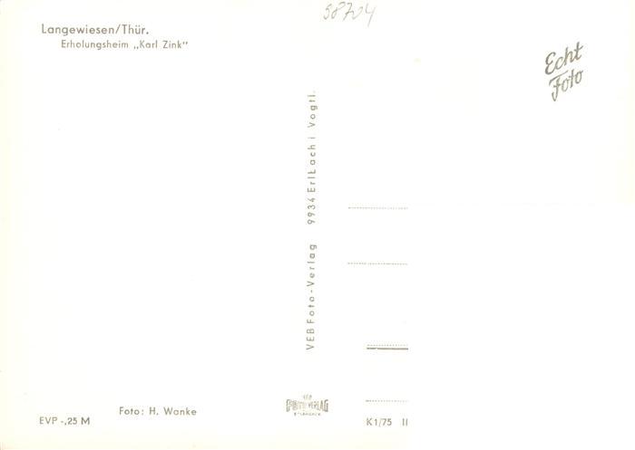 73883054 Langewiesen Erholungsheim Karl Zink postalisch nicht gelaufen Erhaltung siehe scans [WerneD78] KatCode: 11110016070032