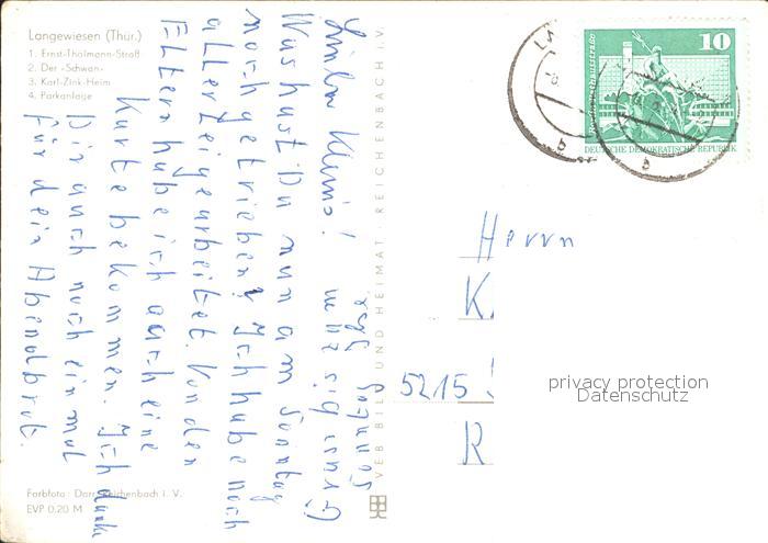 72316834 alte Postkarte Langewiesen Ernst Thaelmann Str Der Schwan Karl Zink Heim Parkanlage postalisch gelaufen Erhaltung siehe scans KatCode: 11110016070032