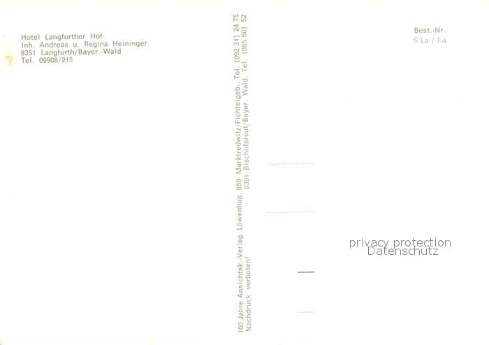 72797044 Langfurth Ansbach Hotel Langfurther Hof postalisch nicht gelaufen Erhaltung siehe scans [LiesaD40] KatCode: 11110009571170