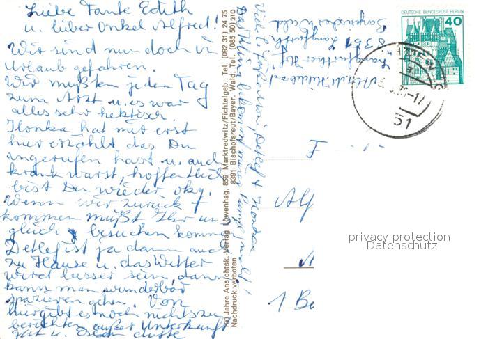 73596680 alte Postkarte Langfurth Ansbach Panorama Kirche Hirsch im Nationalpark Im Sonnenwald postalisch gelaufen Erhaltung siehe scans [WerneD78] KatCode: 11110009571170