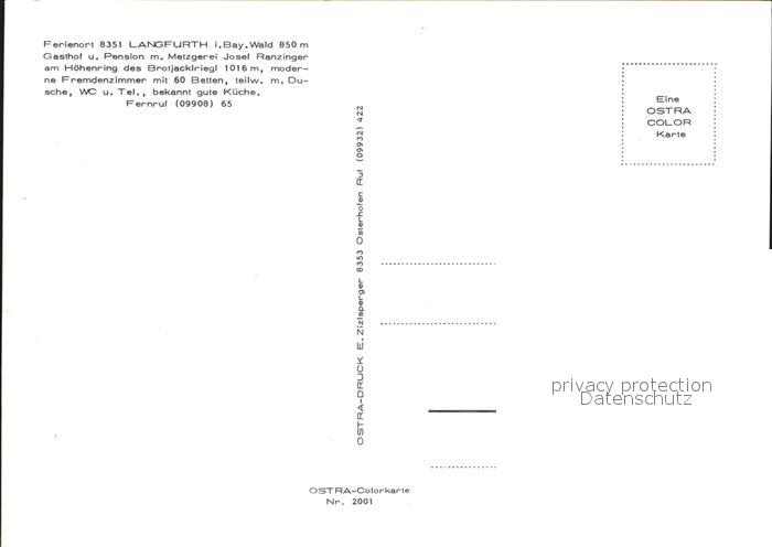 72591552 Langfurth Schoefweg Gasthof Pension Ranzinger postalisch nicht gelaufen Erhaltung siehe scans [WerneD78] KatCode: 11110009272145