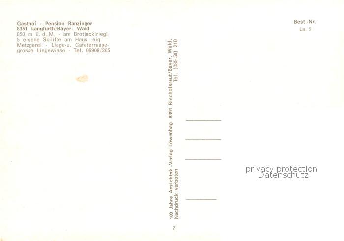 73047413 Langfurth Schoefweg Gasthof Pension Ranzinger Panorama postalisch nicht gelaufen Erhaltung siehe scans [WerneD78] KatCode: 11110009272145