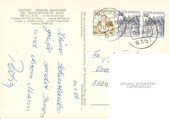 73651743 alte Postkarte Langfurth Schoefweg Gasthof Pension Ranzinger Schlepplift Panorama postalisch gelaufen Erhaltung siehe scans [WerneD78] KatCode: 11110009272145