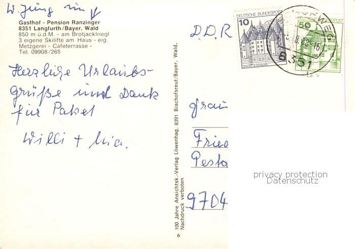 73789114 alte Postkarte Langfurth Schoefweg Gasthof Pension Ranzinger postalisch gelaufen Erhaltung siehe scans [WerneD78] KatCode: 11110009272145