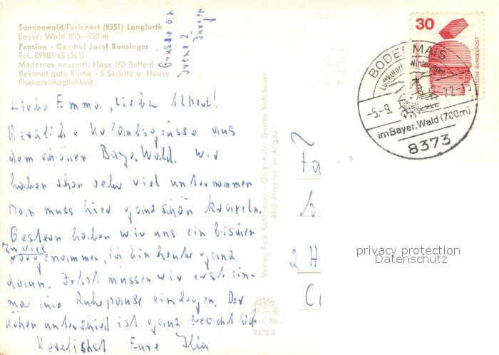 73651740 alte Postkarte Langfurth Schoefweg Pension Gasthof Josef Ranzinger Panorama postalisch gelaufen Erhaltung siehe scans [WerneD78] KatCode: 11110009272145