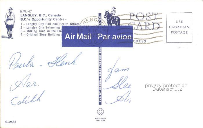 old postcard Langley British Columbia City Hall Health Offices Swimmingpool Milking Time Original Store Building postalisch gelaufen Erhaltung siehe scans