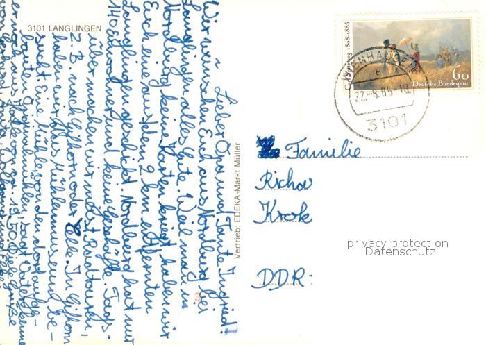 73648433 alte Postkarte Langlingen Kirche Niedersaechs Bauernhaus Schafherde Ferienhaus an der Aller postalisch gelaufen Erhaltung siehe scans [WerneD78] KatCode: 11110003351017