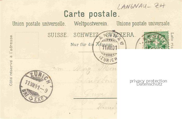 34146172 alte Postkarte Langnau Albis Horgen ZH Restaurant Wildpark Waldpartie Hirsche Auerhahn Litho postalisch gelaufen Erhaltung siehe scans [FriedD77] KatCode: 11470260890332