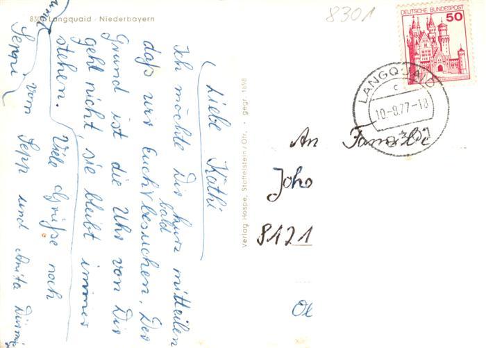 73885992 alte Postkarte Langquaid Ortsansichten postalisch gelaufen Erhaltung siehe scans [FriedD77] KatCode: 11110009273141