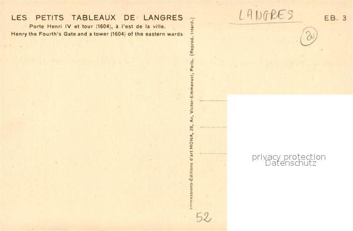 13506310 Langres Porte Henri IV et Tour Collection Les Petits Tableaux de Langres postalisch nicht gelaufen Erhaltung siehe scans [FriedD77] KatCode: 11170052252269