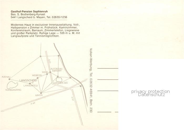 73841448 Langscheid Mayen Gasthof Pension Sophienruh Gastraeume Zimmer postalisch nicht gelaufen Erhaltung siehe scans [WerneD78] KatCode: 11110007137061