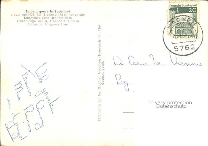 72255352 alte Postkarte Langscheid Sorpesee am Sorpsee Sorpseetalsperre postalisch gelaufen Erhaltung siehe scans KatCode: 11110005958044