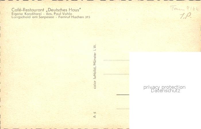 72504602 Langscheid Sorpesee Cafe Restaurant Deutsches Haus Luftaufnahme postalisch nicht gelaufen Erhaltung siehe scans KatCode: 11110005958044