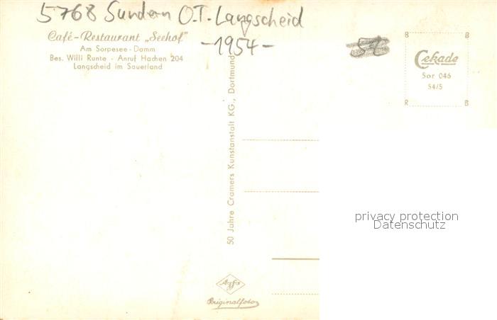 73695334 Langscheid Sorpesee Cafe Restaurant Seehof postalisch nicht gelaufen Erhaltung siehe scans [WerneD78] KatCode: 11110005958044