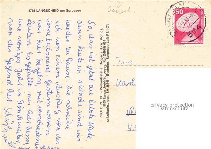 74007027 alte Postkarte Langscheid Sorpesee Fliegeraufnahme postalisch gelaufen Erhaltung siehe scans [WerneD78] KatCode: 11110005958044