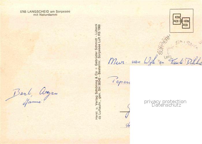 72904759 alte Postkarte Langscheid Sorpesee Fliegeraufnahme Naturdamm postalisch gelaufen Erhaltung siehe scans [AndreD76] KatCode: 11110005958044
