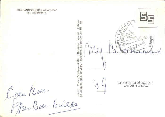 72241965 alte Postkarte Langscheid Sorpesee Naturdamm Fliegeraufnahme postalisch gelaufen Erhaltung siehe scans KatCode: 11110005958044