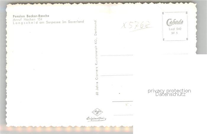 42988140 Langscheid Sorpesee Pension Becker Rasche postalisch nicht gelaufen Erhaltung siehe scans [AndreD76] KatCode: 11110005958044