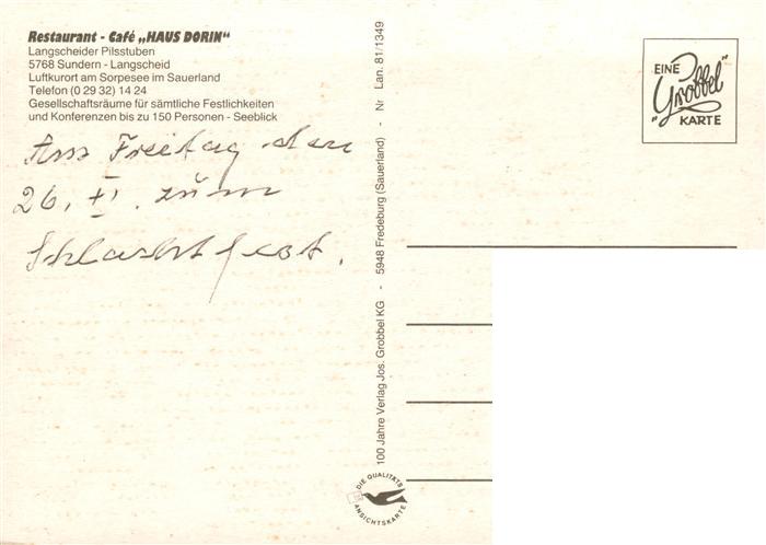 73943294 Langscheid Sorpesee Restaurant Cafe Haus Dorin Gastraeume Bar postalisch nicht gelaufen Erhaltung siehe scans [WerneD78] KatCode: 11110005958044
