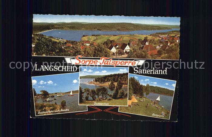 72524290 Langscheid Sorpesee Sorpe Talsperre Stausee Bootsverkehr nach Amecke Badeanstalt Zeltplatz postalisch nicht gelaufen Erhaltung siehe scans KatCode: 11110005958044
