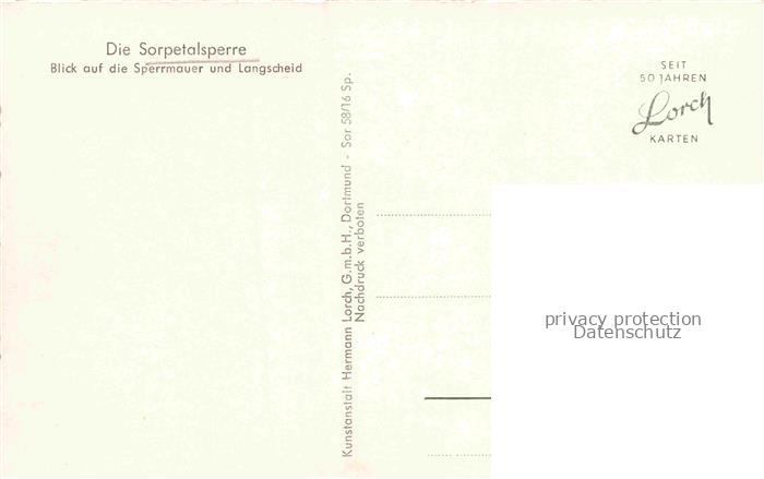74150960 Langscheid Sorpesee Sorpetalsperre Blick auf die Sperrmauer postalisch nicht gelaufen Erhaltung siehe scans [FriedD77] KatCode: 11110005958044