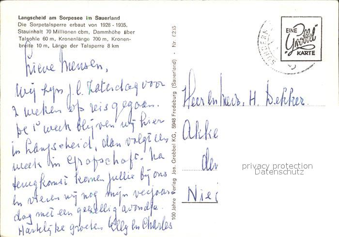 72443537 alte Postkarte Langscheid Sorpesee Teilansicht Faehre postalisch gelaufen Erhaltung siehe scans KatCode: 11110005958044