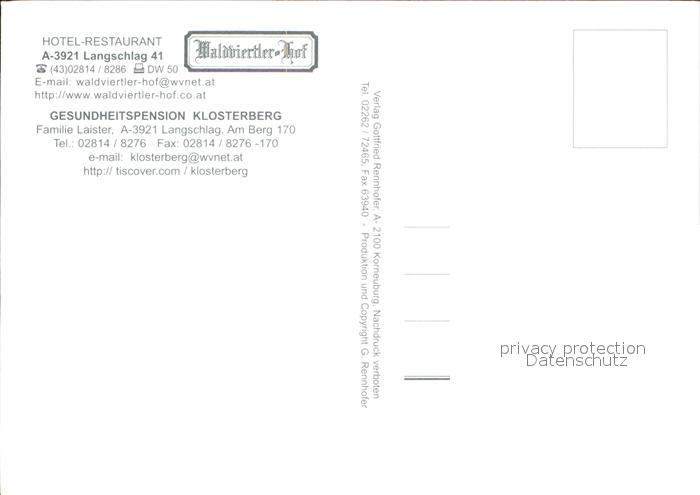 12572800 Langschlag Pension Klosterberg Hotel Waldviertler Hof postalisch nicht gelaufen Erhaltung siehe scans [NatalD47] KatCode: 11390124032516