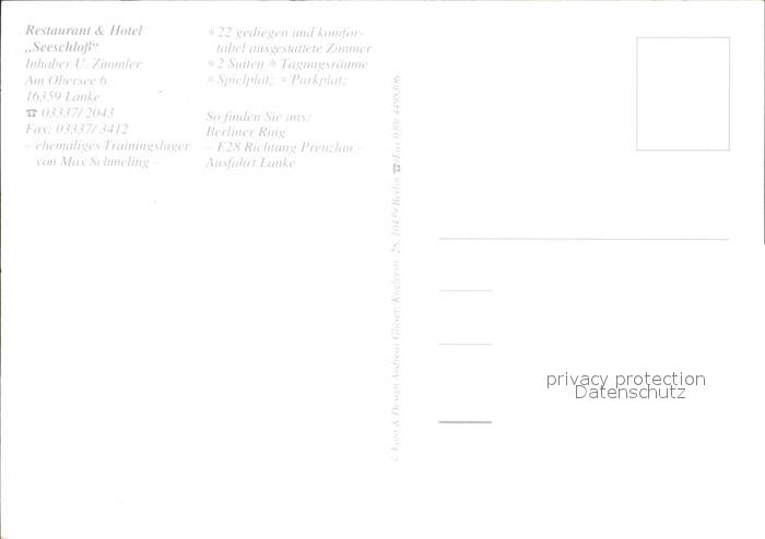 72024308 Lanke Restaurant Hotel Seeschloss postalisch nicht gelaufen Erhaltung siehe scans KatCode: 11110012060269