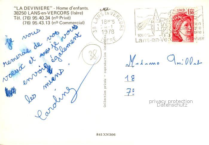 13163569 carte postale Lans-en-Vercors Home d Enfants La Deviniere postalisch gelaufen Erhaltung siehe scans [FriedD77] KatCode: 11170038138205
